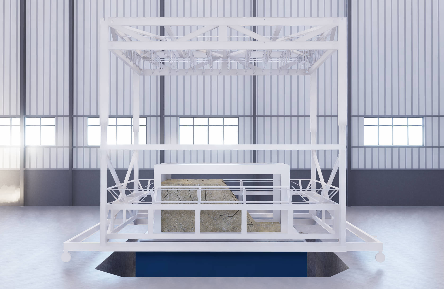 地震模拟振动台:三向六自由度,最大负载:60吨,工作频率:0.1~50Hz,最大水平加速度:1.5g,最大竖向加速度:1.2g。