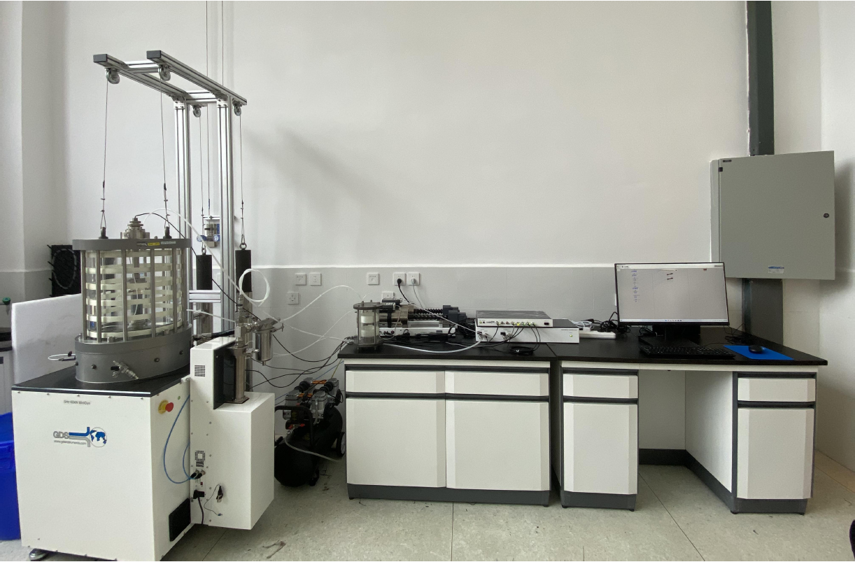 本套粗粒土非饱和土强度三轴仪为英国GDS公司产品,采用伺服电机控制。最大轴向力60kN,最大围压、反压2MPa,最大测试频率:轴向10Hz、围压5Hz,最大试样尺寸为Ø150*300mm,同时还配备了Ø50mm\Ø70\Ø100饱和土底座顶帽。该系统可进行各向同性和各向异性固结;UU,CD和CU三轴测试,同时测量体变或者孔压,能够完成反压饱和,固结和剪切加载等测试,轴向和围压可以进行动态加载,同时能够进行非饱和土试验,配备Ø50mm\Ø70\Ø100\Ø100非饱和土底座顶帽,是粗粒土非饱和土强度测试不可多得的精密测试仪器。